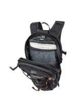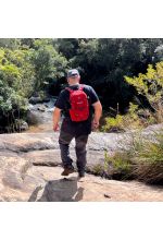 Ultraleve e superconfortável: alças largas e ergonômicas estilo colete com sistema de compressão elástica, duas alças de esterno ajustáveis e material macio nas costas criam um ajuste semelhante a uma roupa. Um bolso interno de malha elástica e tiras de compressão laterais ajudam a eliminar a oscilação da carga, não importa o quão desafiador seja o terreno. Um bolso de coldre na frente de uma alça de ombro facilita e agiliza o acesso aos bastões de trekking dobráveis. E há espaço para frascos macios e um GPS nos bolsos das alças. O tecido do corpo é feito de materiais 100% reciclados e tem certificação bluesign®.