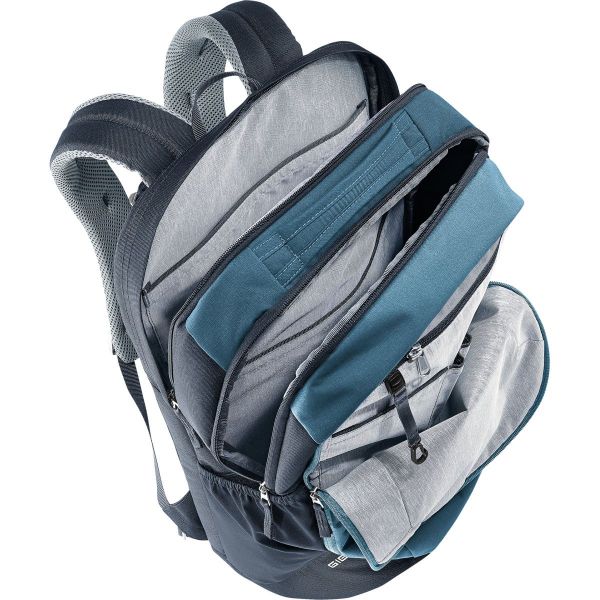 Um escritório organizado e portátil. As mochilas da Linha Office possuem um amplo espaço para organizar não só material de trabalho e estudo. A Giga é o principal item da linha de mochilas de notebook da Deuter. Desde sua criação, em 2000, ela vem evoluindo em design e funcionalidade de forma surpreendente! Possui sistema de ventilação Airstripes, alças anatômicas feitas de 3D AirMesh, tira peitoral e compartimento acolchoado para o notebook (fixo, no interior da mochila, para notebooks de até 15,6). Possui dois compartimentos principais e um compartimento organizador para documentos, celular, canetas e porta-chaves, além dos bolsos laterais em strecht. Suas fivelas são feitas em Poliamida 6.6 e o tecido é revestido internamente com Poliuretano (PU) para conferir resistência à água.