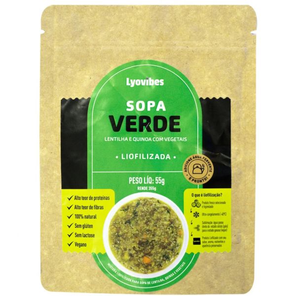 Sopa Verde de Lentilha e Quinoa com Vegetais Liofilizada Lyovibes – Sachê 55g