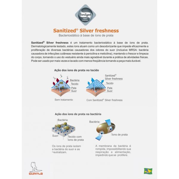 Tamanho único, Com Sanitized® Silver freshness – tratamento à base de íons de prata, que impede a proliferação de diversas bactérias, mantendo a roupa livre dos odores da transpiração.